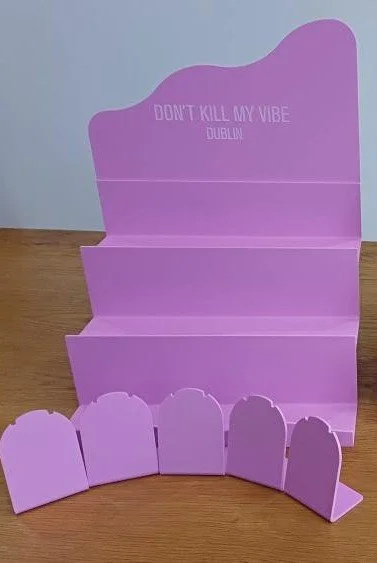 This foldable ladder-style display stand features removable shelves, tool-free assembly, and customisable shelf fronts and banners. Built for flexibility and easy transport, perfect for showcasing products with style.